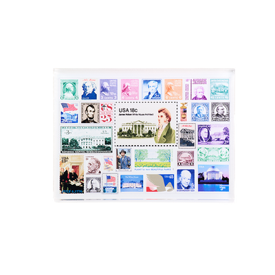 The USPS Stamp Collage Collection features official USPS stamps with images of the Presidents and White House over the years. This Acrylic magnet is a great way to celebrate White House history and inspire learning about the historic people and events that have spent time there. This is a USPS Officially Licensed Product.