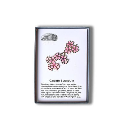 Cherry Blossom cluster pin inspired by the dense branches of the Cherry Blossom tree. Arrives boxed and mounted on printed story card.