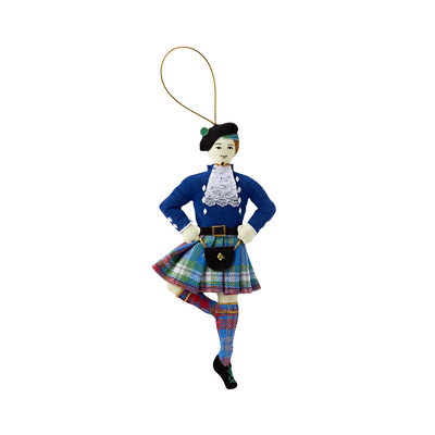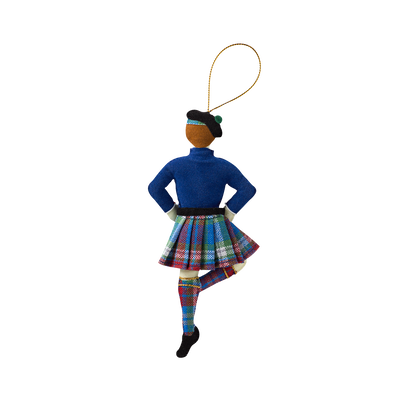 This Highland Dancer is dressed in a traditional Scottish kilt in the official tartan of the White House Historical Association, a tribute to the eight Scottish stonemasons who traveled to Washington in 1794 to embellish the sandstone selected by George Washington for the White House. Thirty-four American presidents have claimed Scottish heritage. The five colors woven into the tartan represent the fundamental colors associated with the architectural fabric of the White House itself. Three colors represent the iconic formal parlors on the State Floor: the Red Room, Green Room, and Blue Room. The gray represents the Aquia sandstone and the artistry of the Scots stonemasons. The white represents the white exterior of the White House, which was first whitewashed by the stonemasons to protect the porous Aquia sandstone. It was later painted white, inspiring the name by which the house is known today.
