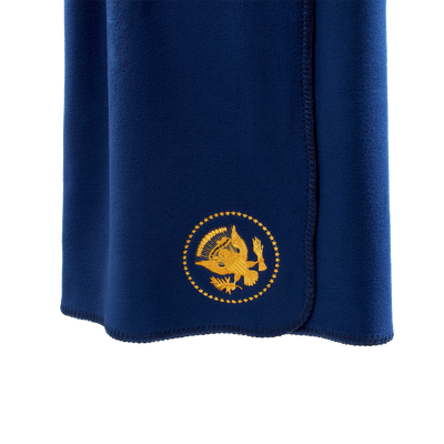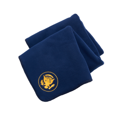 On October 25, 1945 President Harry S. Truman issued Executive Order 9646, which officially defined the Presidential Coat of Arms and Seal for the first time. An eagle’s head, which originally faced right toward a bundle of thirteen arrows held in its talons, was turned to face left toward the olive branch it held, symbolizing peace. Since 1945, the only changes made to the seal were the additions of the 49th and 50th stars. This soft navy fleece blanket is embroidered with the Truman Seal in gold.