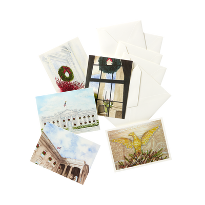 Festive holiday wreaths and colorful evergreen arrangements, a favorite holiday tradition at the White House, are expertly depicted by artist Carole Moore Biggio in this unique collection of notecards. Included are 10 cards and 10 envelopes. Two of each design.