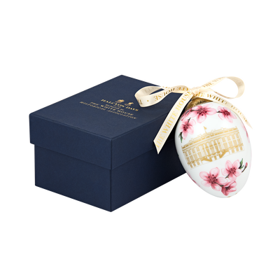 This egg ornament is a new shape for Halcyon Days, which has been entirely hand-decorated in the UK by master craftsmen and women. Halcyon Days takes great pride in delivering exceptionally made products, demonstrating the very best of English craftsmanship. Each egg showcases the skill of their artisans, based in Stoke-on-Trent, the heart of the English pottery industry.