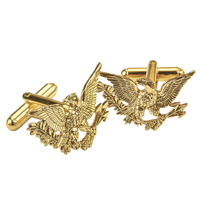 The American Bald Eagle reproduced on these cuff links was featured on a set of cut and engraved glassware designed for the White House during President Abraham Lincoln's administration.