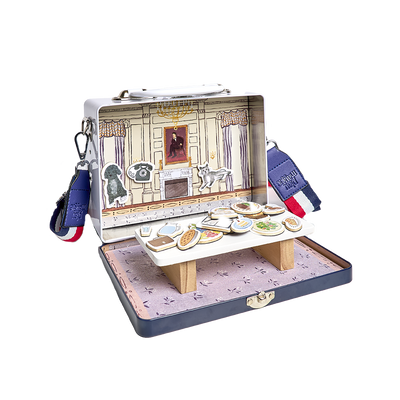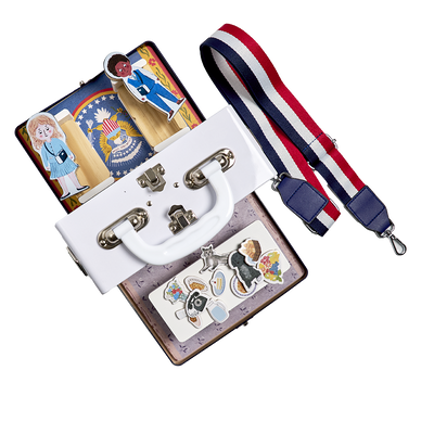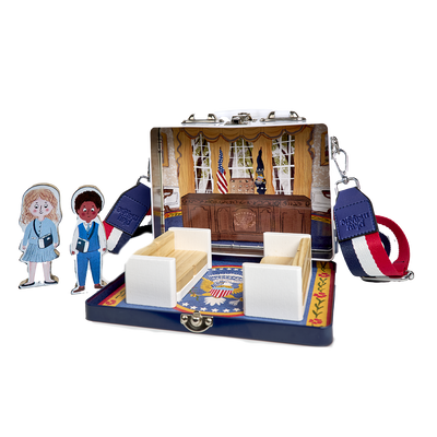 Always remember the wonder of visiting the White House with this exclusive play set from Play Maysie. Created to commemorate the opening of The People's House: A White House Experience, our first fully curated and digital museum experience, The Play Maysie White House Play Case is an instant classic for all ages. From kids that love to play on the go, to nostalgic adults that love the retro look of vintage lunchbox toys, this play case is sure to bring joy to the whole family. This play case opens on both sides to reveal two of the most important rooms in the White House.