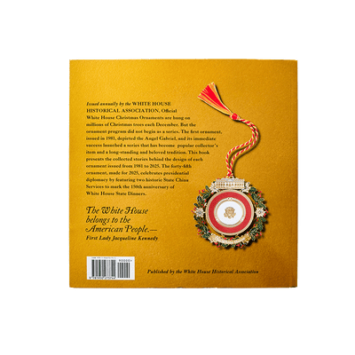 Issued annually by the White House Historical Association, Official White House Christmas Ornaments are hung on millions of Christmas trees each December. But the ornament program did not begin as a series. When the Angel Gabriel ornament was issued by the Association in 1981, it was an immediate success and the phenomenon began. Today the ornaments are a popular collector’s item and a long-standing and beloved tradition. This book includes the collected stories behind the design of each of the forty-five ornaments issued from 1981 to 2025. The forty-fifth ornament, made for 2025 celebrates the history and traditions of presidential diplomacy by highlighting two iconic State China Services.
