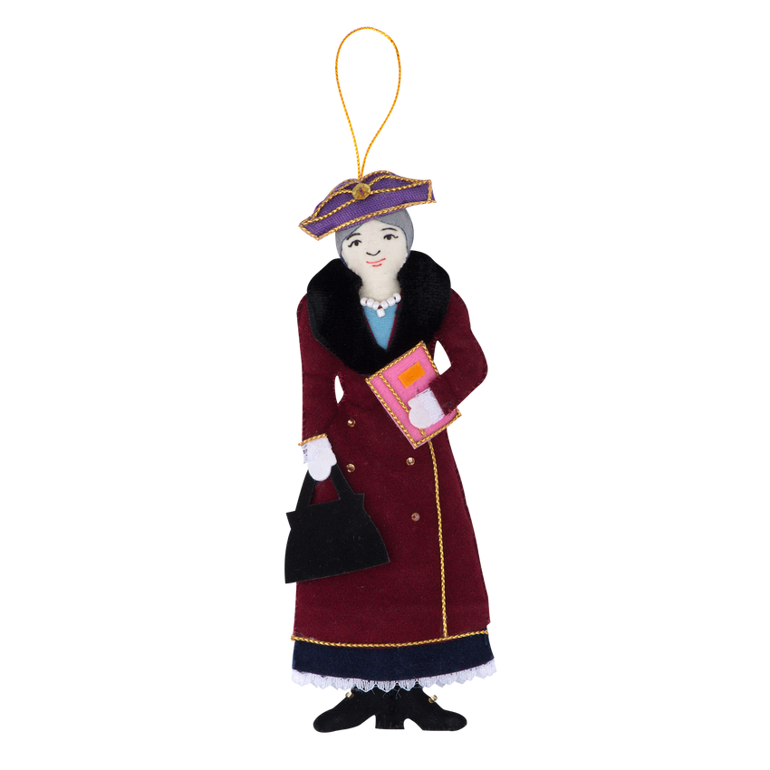 Handmade felt ornament of First Lady Eleanor Roosevelt, wife of President Franklin D. Roosevelt.