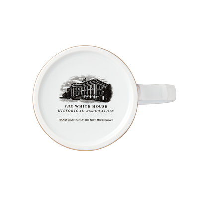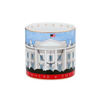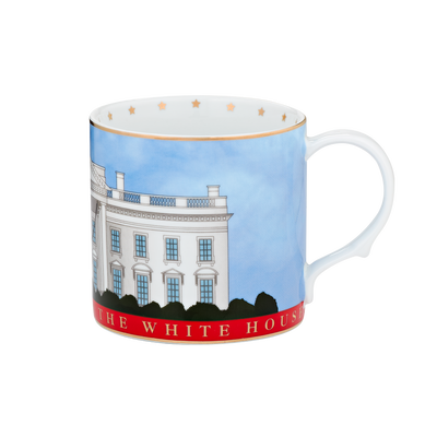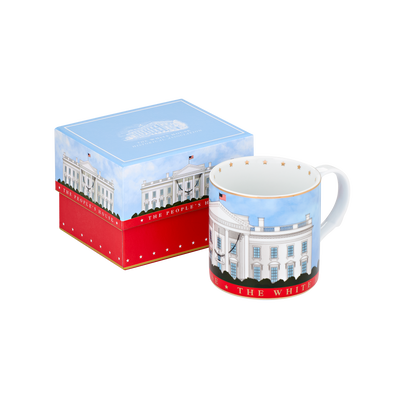 Made of smooth and high quality porcelain, this elegant 12 ounce. mug features a watercolor illustration of The White House. Adorned with gold foil details along the rim and handle, it reads "THE PEOPLE'S HOUSE. THE WHITE HOUSE." along the base of the mug in foil lettering. Mug comes in a giftable, decorative box. Not microwave safe. Handwash recommended.