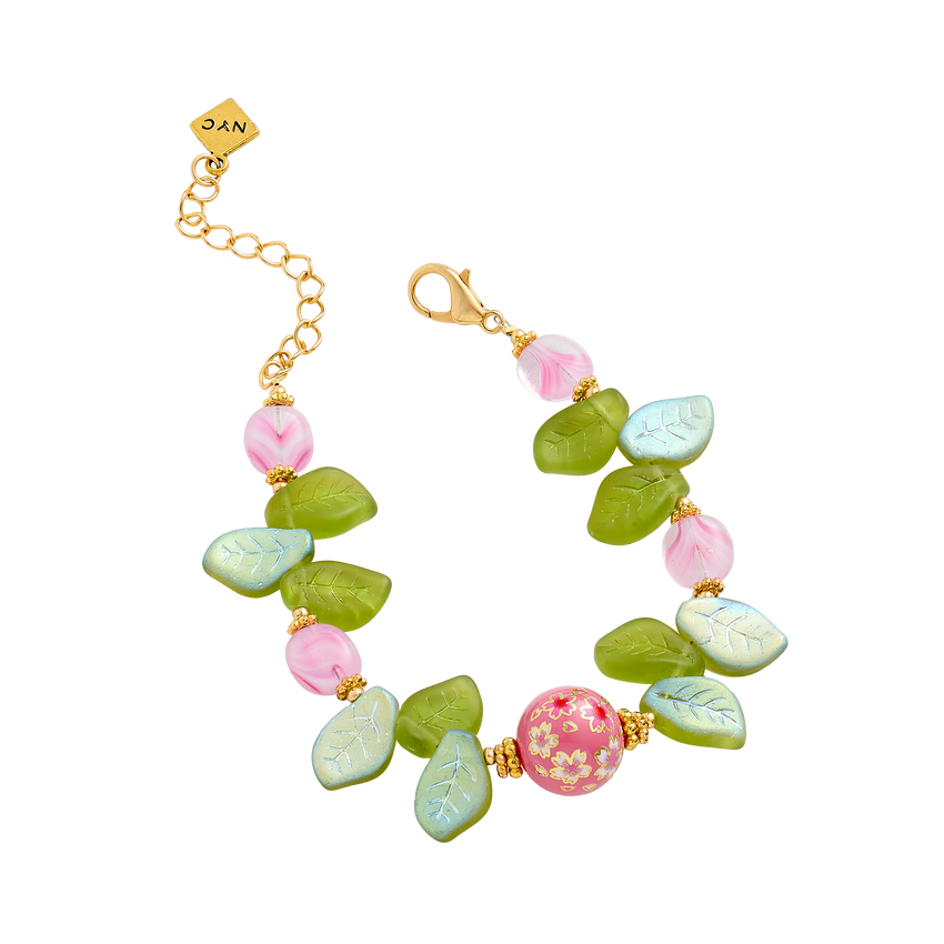 Made in the U.S.A. exclusively for the White House Historical Association, this exclusive collection features beautiful handmade Tensha beads sourced from Osaka, Japan,decorated with delicate cherry blossom flowers. Leaves are made of painted, pressed glass.