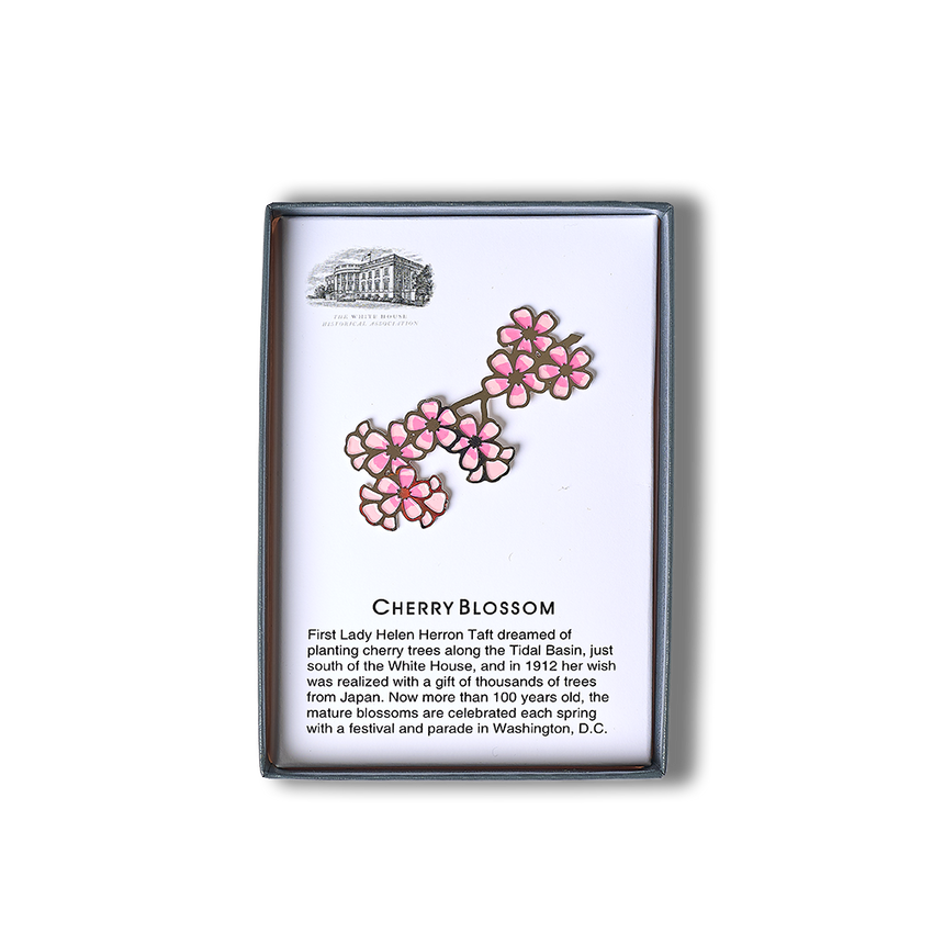 Cherry Blossom cluster pin inspired by the dense branches of the Cherry Blossom tree. Arrives boxed and mounted on printed story card.