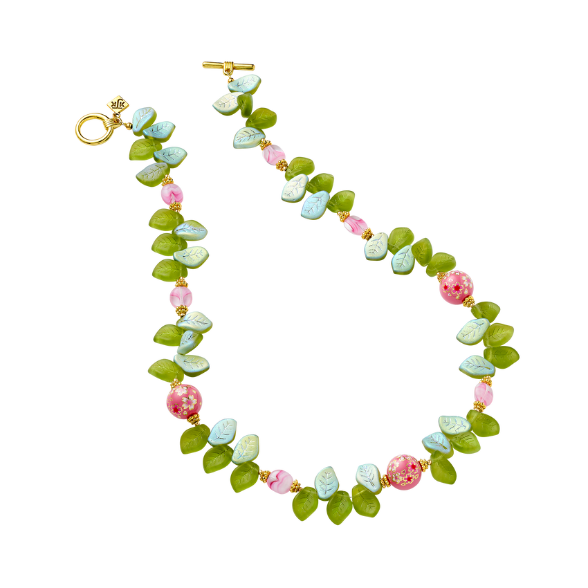 Made in the U.S.A. exclusively for the White House Historical Association, this exclusive collection features beautiful handmade Tensha beads sourced from Osaka, Japan, decorated with delicate cherry blossom flowers. Leaves are made of painted, pressed glass.