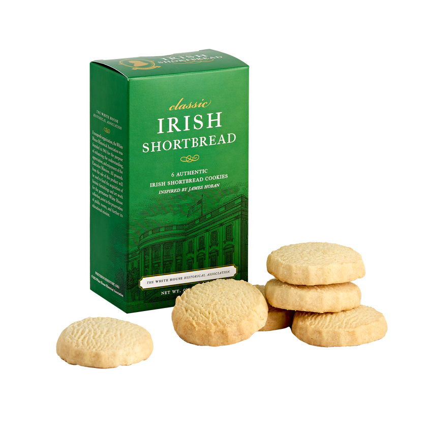 These melt-in-your-mouth authentic Irish Shortbread cookies are inspired by the Irishman, James Hoban, architect of the White House. Crafted from a traditional family recipe from Ireland, they are perfect for gifting or any special occasion. Taste the authentic flavor of Ireland in every bite. Each box comes with six cookies.