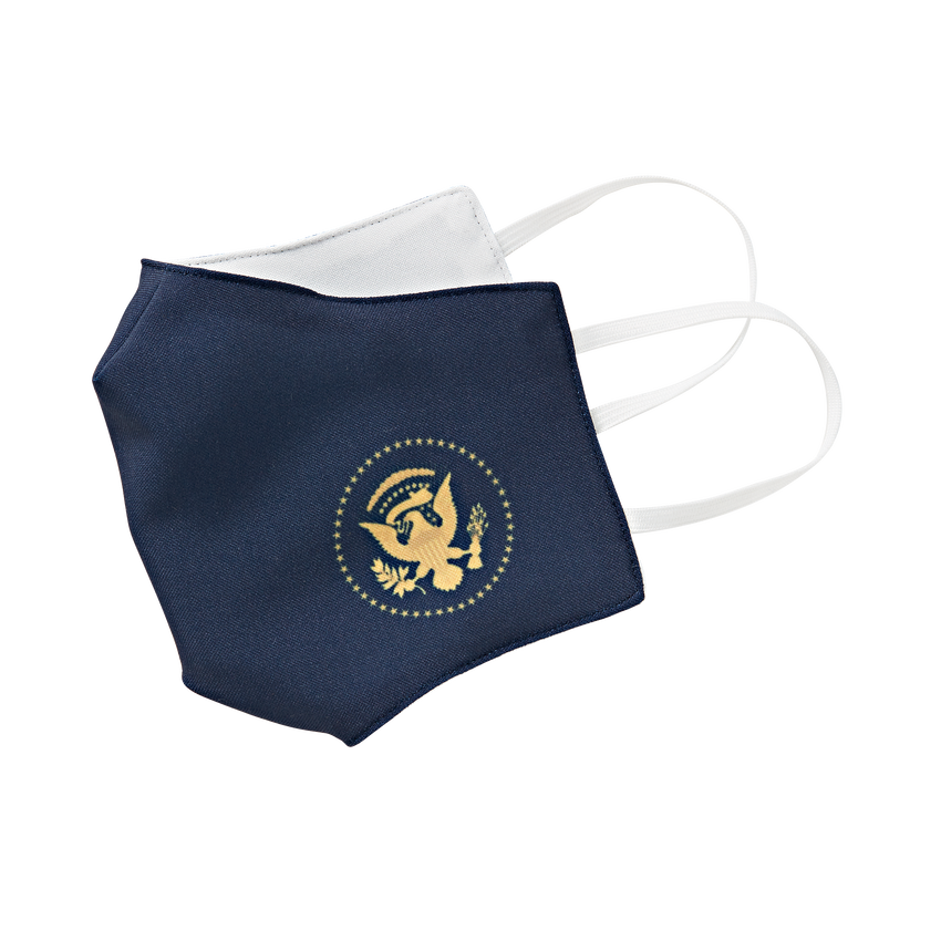 Stay safe with our navy masks with a gold Truman Seal on the corner. These masks are double ply and have an opening in the back to insert an additional filter.