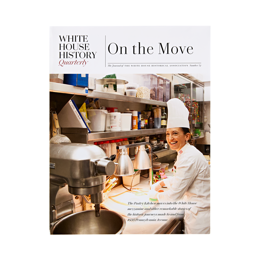 The issue traces the historic moves of White House furnishings from Philadelphia to the new City of Washington in 1800, and from the White House to the Civil War-era summer retreat of the Lincoln family at the Soldiers' Home. We also look at the Prohibition-era complications faced by President Woodrow Wilson when he sought to move his collection of wine out of the White House, and we go behind the scenes to trace an historic move made within the White House walls when the first dedicated White House Pastry Shop became a reality. Looking at moves beyond the White House, we follow the story of the relocation of the entire contents of The Ronald Reagan pub from Ballyporeen, Ireland, to Simi Valley, California.