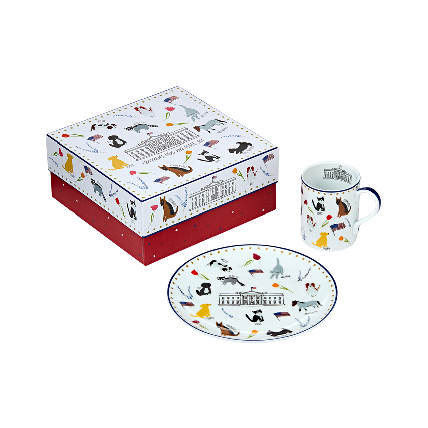 Make mealtime fun for your little ones with this adorable ceramic mug and plate set. Both pieces feature playful illustrations of famous furry residents, including Macaroni, Caroline Kennedy’s pet pony; Socks, a stray cat adopted by Chelsea Clinton's daughter; and Miss Beazley, President George W. Bush’s Scottish terrier.