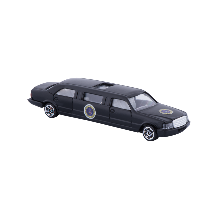 Sporting the presidential seal on both sides, this toy presidential limousine is a great addition to any car collection. With working wheel action and plastic windows and sunroof, the authentic details on this toy make it a great gift for any child. This toy limousine includes authentic detail.