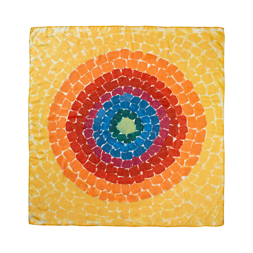 Spruce up any outfit with this vibrant scarf inspired by the iconic Resurrection painting by Alma Thomas. The vibrant colors of Resurrection, created in 1966 by Alma Thomas, recall the techniques used in Pointillism and Abstract Expressionism. A notable member of the Washington Color School, which was known for its Color Field paintings, Thomas was an educator and artist in Washington, D.C., for most of her career. The first painting in the White House Collection by an African American woman, Resurrection was a gift of the White House Historical Association in 2014 and first displayed in the Family Dining Room during Black History Month in 2015.