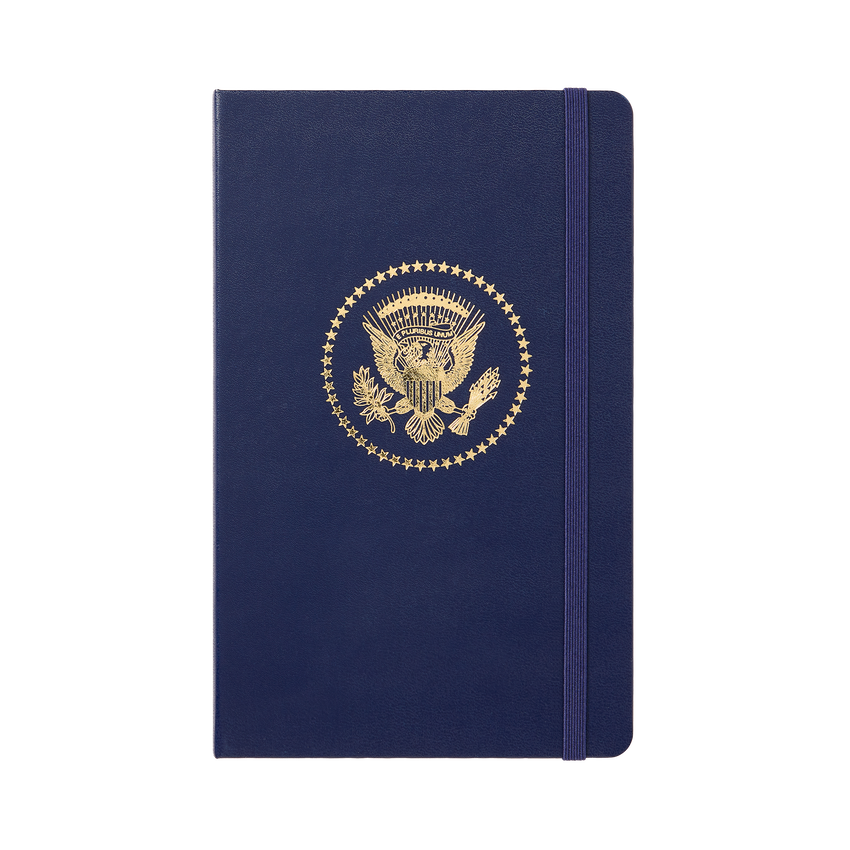 Leather hard cover, rounded corners notebook with elastic closure. Features 240 lined pages of ivory-colored, acid-free paper with expandable inner pocket in the back.