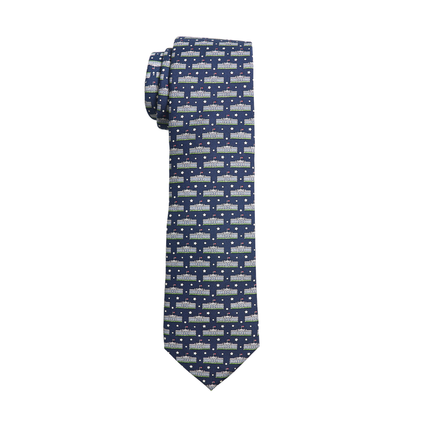 Exclusive to the White House Historical Association, this classic 100% silk tie features a repeated White House illustration with stars. Dry clean only