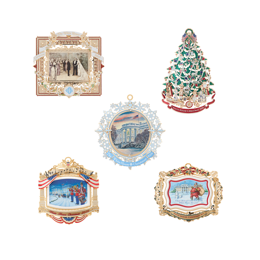 Each year, the White House Historical Association honors a president or significant White House anniversary with a collectible, American made ornament. The Association is happy to announce that our highly sought-after ornaments are available in consecutive year sets. This offering is designed to help our customers fill in their collections with any of our ornaments they may have missed over the years or to begin a new collection.