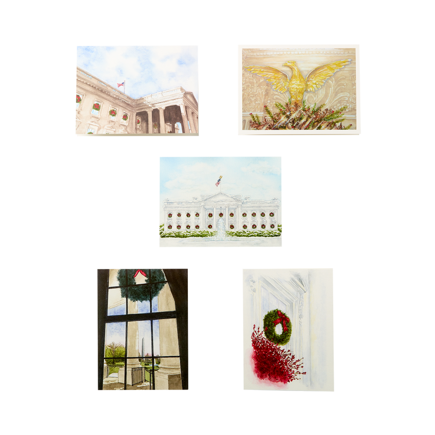 Festive holiday wreaths and colorful evergreen arrangements, a favorite holiday tradition at the White House, are expertly depicted by artist Carole Moore Biggio in this unique collection of notecards. Included are 10 cards and 10 envelopes. Two of each design.