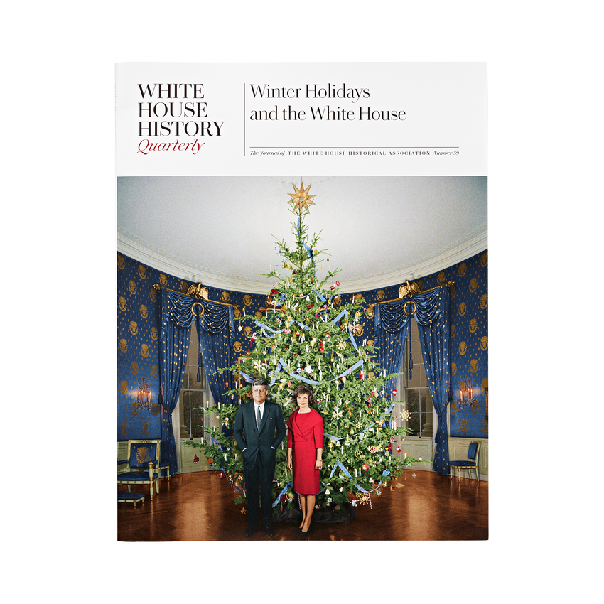 The White House is majestic every day of the year, but it becomes truly magical during the holidays—with or without a blanket of snow. The traditions, decorations, and festivities surrounding Hanukkah, Christmas, and New Year’s Day brighten the darkest days of winter and are the subject of this issue. We begin with a look at one of the more recent White House traditions, the annual Hanukkah receptions and the lighting of a menorah. White House Associate Curator Donna Hayashi-Smith presents the stories behind the special menorahs selected for their historical significance and lent to the White House for use each year. The arrival of the Blue Room Christmas tree by horse-drawn wagon is the ultimate signal that the holiday season has officially begun. It was President Benjamin Harrison who first adopted the practice of decorating an indoor Christmas tree at the White House, and Scott Harris takes us to the Benjamin Harrison Presidential Site, where a replica of that first tree, surrounded by toys, is found in the front parlor. For nearly a century the National Christmas Tree has been enjoyed by visitors to the White House neighborhood. Jonathan Pliska tells the story of two trees positioned precisely 100 feet inside the south fence by President Franklin Delano Roosevelt to alternate as the National Tree. Since 1961, when First Lady Jacqueline Kennedy chose to feature “Nutcracker” decorations on the Blue Room Christmas tree, countless themes, planned many months in advance, have been chosen by the first ladies for the decorations that embellish trees, halls, and State Rooms. Lauren McGwin takes us back to 1978, when First Lady Rosalynn Carter created a Victorian Christmas tree, while Claire Faulker remembers First Lady Laura Bush’s “Literary Christmas.” Some traditions, such as Franklin Delano Roosevelt’s annual reading of A Christmas Carol, recounted in this issue by Rebecca Durgin, are unique to a single presidency. Others, such as presidential messages to the public, are more enduring. Nikki Pisha looks at the tradition of holiday greeting cards, while Claire Faulkner explores messages carried in print and over the airwaves and internet. Not all beloved traditions have survived. Margaret Strolle gives us a glimpse of the lines that once stretched for blocks to the president’s front door nearly every New Year’s Day from 1801 to 1932. Diplomats, members of the military, government officials, and the general public were welcomed into the White House and greeted by the president.