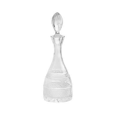 The seal on this glass decanter is taken from the glassware ordered by President and Mrs. Abraham Lincoln in the spring of 1861 from Christian Dorflinger’s Greenpoint Glass Works in Brooklyn, New York. This eagle insignia, enclosed within a shield-shaped cartouche, features an eagle, perched upon a shield, carrying arrows in its left talon and an olive branch in its right. Beneath the shield is a swag bearing the motto, “E Pluribus Unum,” “Out of many, one.” The Lincoln glassware was reordered several times and remained in use at the White House until the Benjamin Harrison administration.