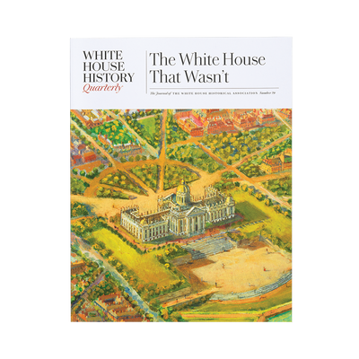 This issue of White House History Quarterly looks at the “White House That Wasn’t”: ideas and events that almost, might have, or surely didn’t happen. We begin in 1791 when the new Federal City on the banks of the Potomac existed only on paper. If the President’s House had been built exactly as specified by city planner Pierre (“Peter”) Charles L’Enfant in his Plan of the City Intended for the Permanent Seat of the Government of the United States, it would have been at least five times the size it was ultimately built by James Hoban. But what would L’Enfant’s house have looked like? The mystery inspired twenty-first century artist Peter Waddell to envision, with brushstrokes on canvas, the President’s House that was never built. A conversation with Waddell about his ambitious panoramic painting, The Indispensable Plan, opens this issue.