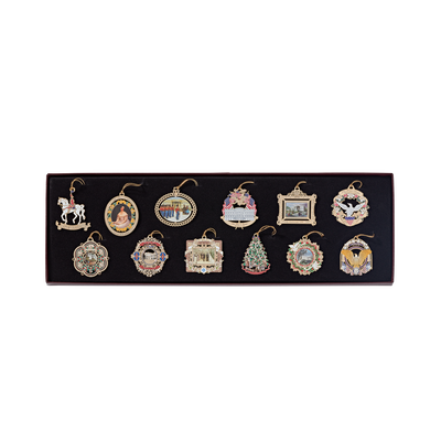 Presenting the second edition of the White House miniatures, inspired by the Official White House Christmas Ornaments. These delicate ornaments are a perfect addition to the collection of miniatures. The miniatures included replicate the 2017, 2013, 2008, 2007, 2006, 2005, 1998, 1997, 1995, 1994, 1993, and 1991 Official White House Christmas Ornaments.