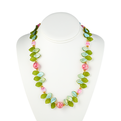Made in the U.S.A. exclusively for the White House Historical Association, this exclusive collection features beautiful handmade Tensha beads sourced from Osaka, Japan, decorated with delicate cherry blossom flowers. Leaves are made of painted, pressed glass.