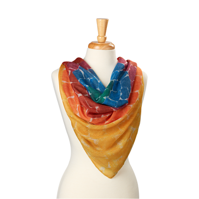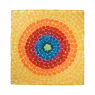 Spruce up any outfit with this vibrant scarf inspired by the iconic Resurrection painting by Alma Thomas. The vibrant colors of Resurrection, created in 1966 by Alma Thomas, recall the techniques used in Pointillism and Abstract Expressionism. A notable member of the Washington Color School, which was known for its Color Field paintings, Thomas was an educator and artist in Washington, D.C., for most of her career. The first painting in the White House Collection by an African American woman, Resurrection was a gift of the White House Historical Association in 2014 and first displayed in the Family Dining Room during Black History Month in 2015.
