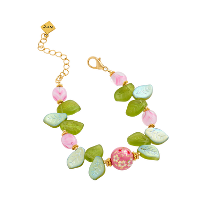 Made in the U.S.A. exclusively for the White House Historical Association, this exclusive collection features beautiful handmade Tensha beads sourced from Osaka, Japan,decorated with delicate cherry blossom flowers. Leaves are made of painted, pressed glass.
