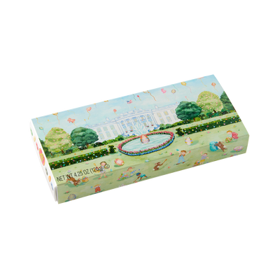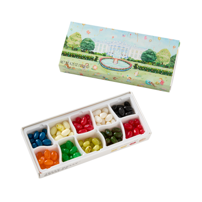 This unique box of Jelly Belly jelly beans features a painting by American artist Katharine Barnwell. Inspired by the annual White House tradition of the Easter Egg roll, when families are invited to the South Lawn of th White House and enjoy in festivities on the following Monday after Easter. This 10-flavor box includes some long time favorites, for any sweet tooth big or small.