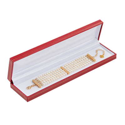 The First Lady Nancy Reagan jewelry collection is inspired by the striking pearl choker worn by Mrs. Reagan in her official portrait by Aaron Shikler. Born in New York City, Nancy Reagan studied theater at Smith College and pursued a successful career performing on Broadway and in motion pictures. She met Ronald Reagan in 1951, and retired from making movies soon after their marriage in order to devote herself to the roles of wife and mother. As first lady from 1981 to 1989, Mrs. Reagan was an advocate for the arts and focused much of her energy on combatting the problems of drug abuse in the nation. This jewelry is made of cultured pearls and comes in a beautiful gift box that measures 8 1/2'' x 2'' x 1".