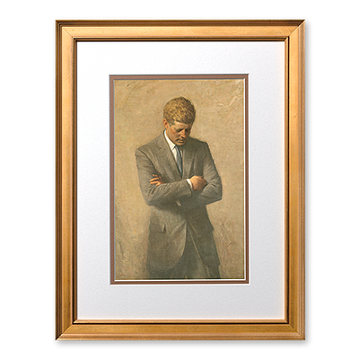 John F. Kennedy served as the thirty-fifth president of the United States from 1961 to 1963. This posthumous portrait of President Kennedy was painted by Aaron Shikler in 1970 and now hangs in the Entrance Hall of the White House.