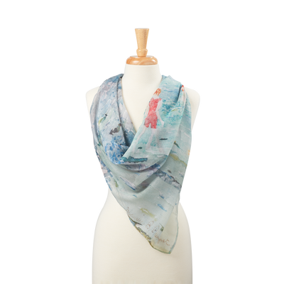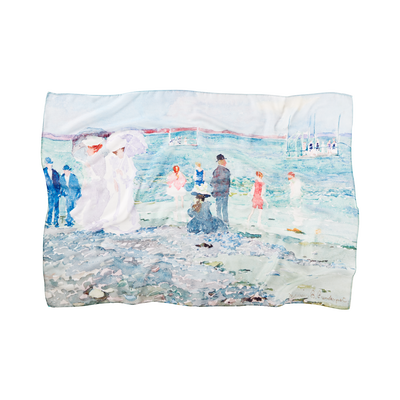 This beautiful scarf depicts the painting Revere Beach by Maurice Pendergast (1896). This watercolor landscape of Revere Beach in Revere, Massachusetts by Maurice Pendergast was completed around 1896-1897. Pendergast captures a sunny day at the beach with swimmers, walkers, and sun-bathers out enjoying a leisurely day. He was a Canadian-born painter who is known as a Post-Impressionist. He has two paintings in the White House Collection.