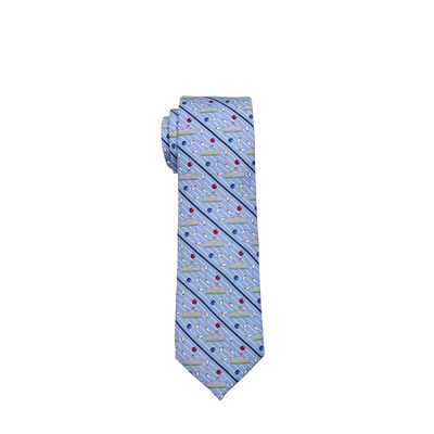 This playful, printed silk tie featuring the White House and bowling balls and pins is an homage to the storied bowling history at the White House. President Truman first built a bowling alley during his restoration of the White House in 1947, which was later moved to the Old Executive Office Building in 1955. In 1973, a single lane bowling alley was added to the White House by President Richard Nixon.
